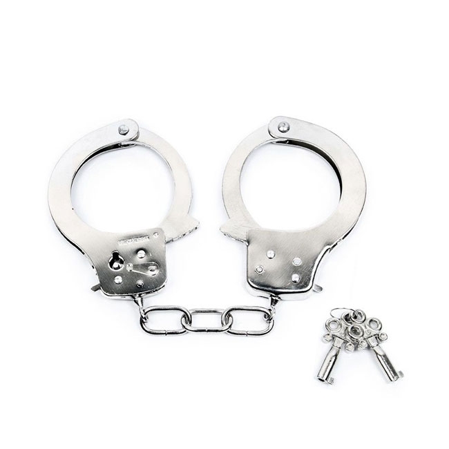 Серебристые наручники на сцепке с ключиками для эротических ролевых игр. Небольшая длина соединительной цепочки сильно сковывает движения рук, добавляя остроты любовной игре. Наручники просты в использовании, не требуют специального ухода. В комплект входят небольшие ключики.