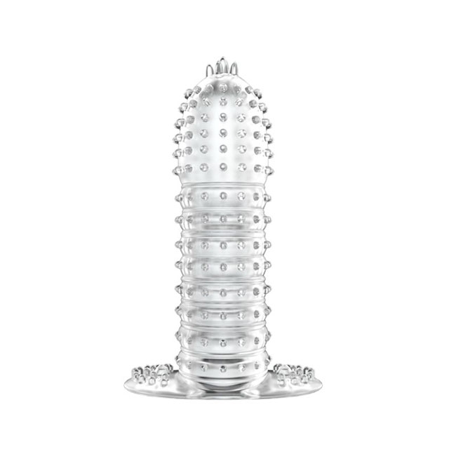 Насадка сделана из прозрачного термопластичного материала с мягкой, эластичной структурой. Легко надевается (аналогично презервативу), позволяя использовать насадку с любым размером полового члена. Имеет рельефную форму с многочисленными пупырышками для стимуляции стенок влагалища.